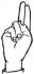 На ћирилици написано МИОДРАГ ВЕЛИМИРОВ састоји се из 16 слова [?]. Исписано ћириличном једноручном азбуком за глувонеме: